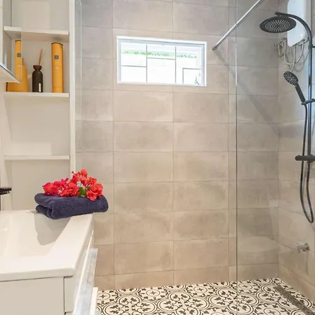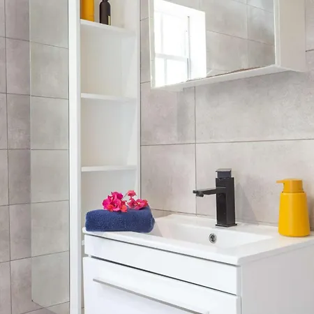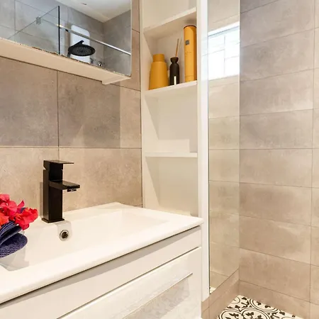 Quest'alloggio dispone di un bar sulla terrazza e un salottino con un impianto di climatizzazione, oltre a servizi di sicurezza come rilevatori di fumo. Oltre a una TV a schermo piatto con canali satellitari per il divertimento, gli ospiti possono usufruire di un divano. L'appartamento è dotato di un bagno con un set di cortesia e asciugamani. Troverai anche una cabina doccia e un bagno alla francese.